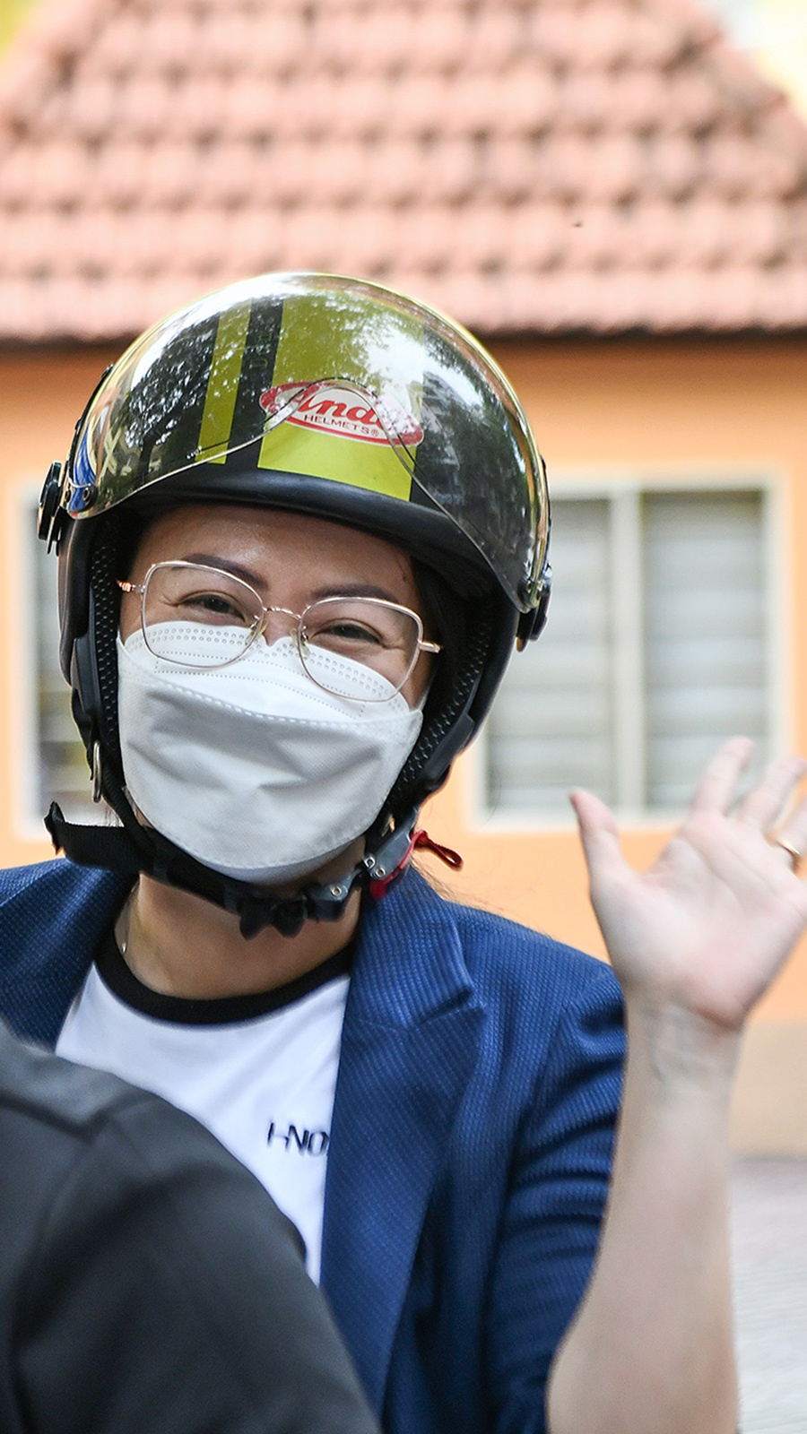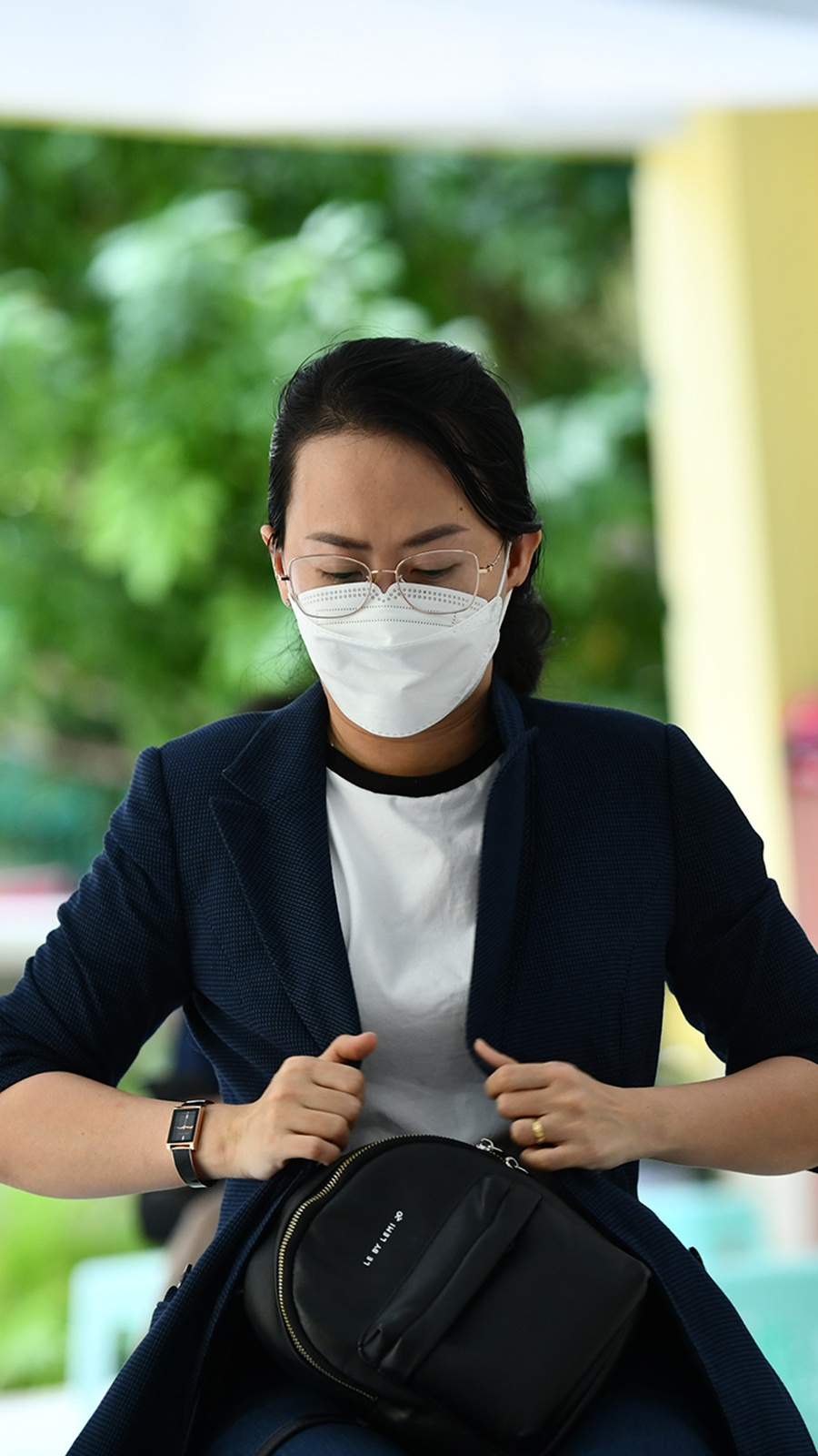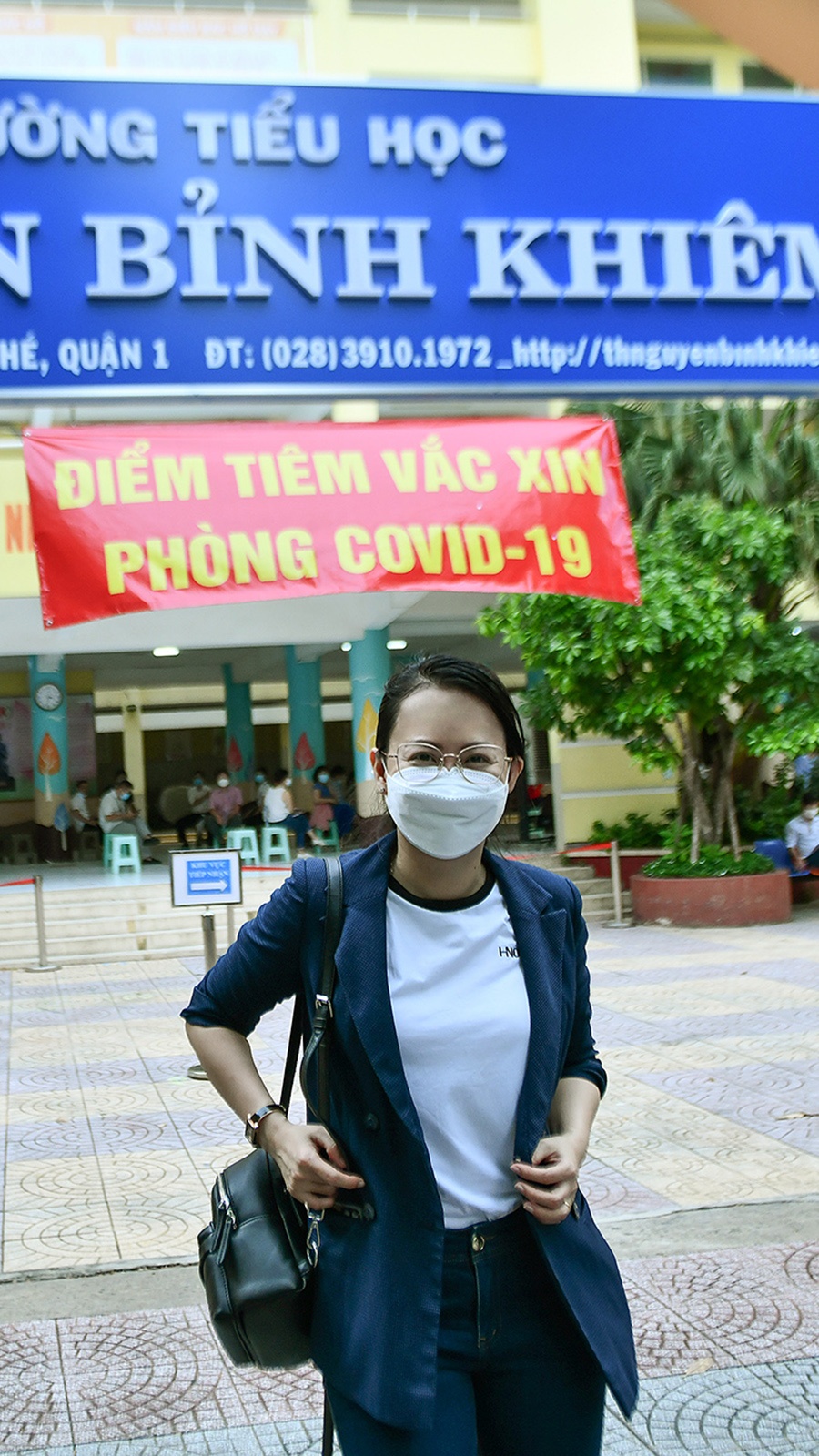 | Tôi là Lê Dương Ngọc Hiền (ngụ quận 12), nhân viên Sở Quy hoạch - Kiến trúc TP.HCM. Chiều 21/6, tôi được người thân chở đến điểm tiêm vaccine phòng Covid 19 tại Trường tiểu học Nguyễn Bỉnh Khiêm, quận 1. |