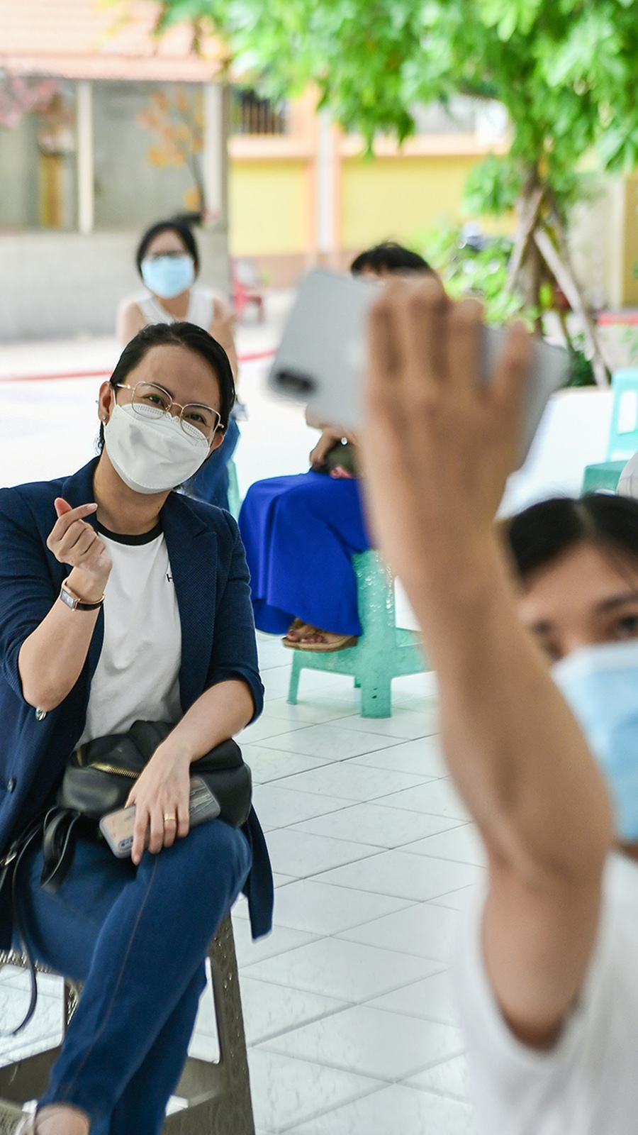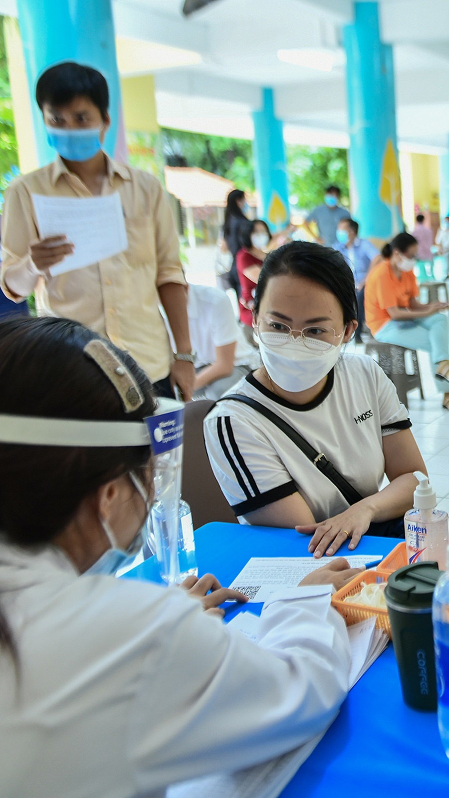 | Trước khi vào khu vực chờ tiêm, tôi được nhân viên kiểm tra thân nhiệt để đảm bảo an toàn phòng dịch. Trong gia đình 4 thành viên, tôi là người được tiêm vaccine sớm nhất. Kế đến là chồng tôi, hiện là công an huyện Hóc Môn, sẽ được tiêm trong vài ngày tới. |