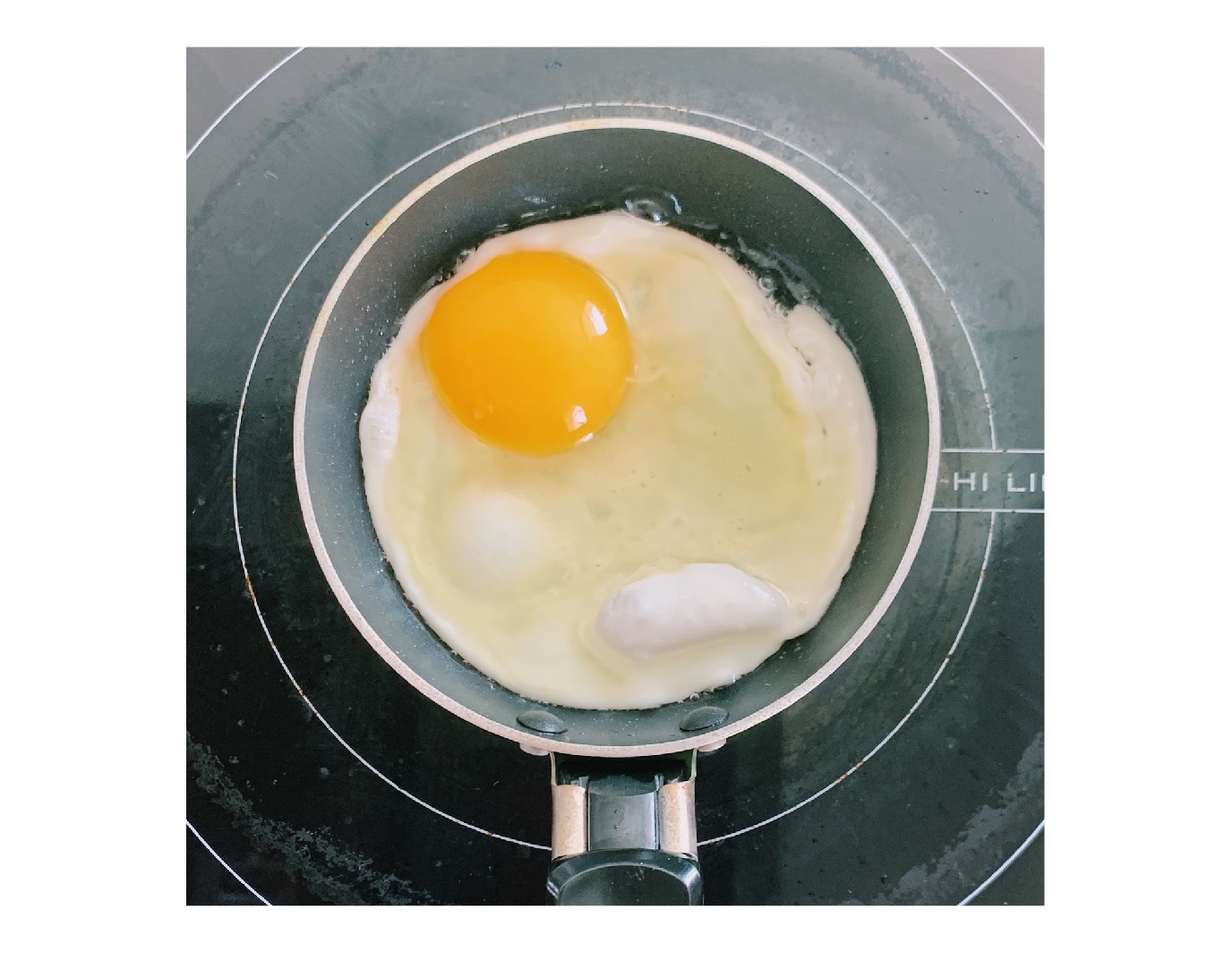 Tôi cũng tự làm mỡ hành bằng cách đun nóng dầu rồi trút hành lá tươi vào và đảo đều. Ốp la thêm một quả trứng lòng đào là tôi đã có gần đầy đủ các nguyên liệu cho món cơm tấm.