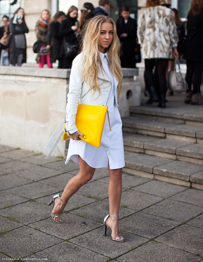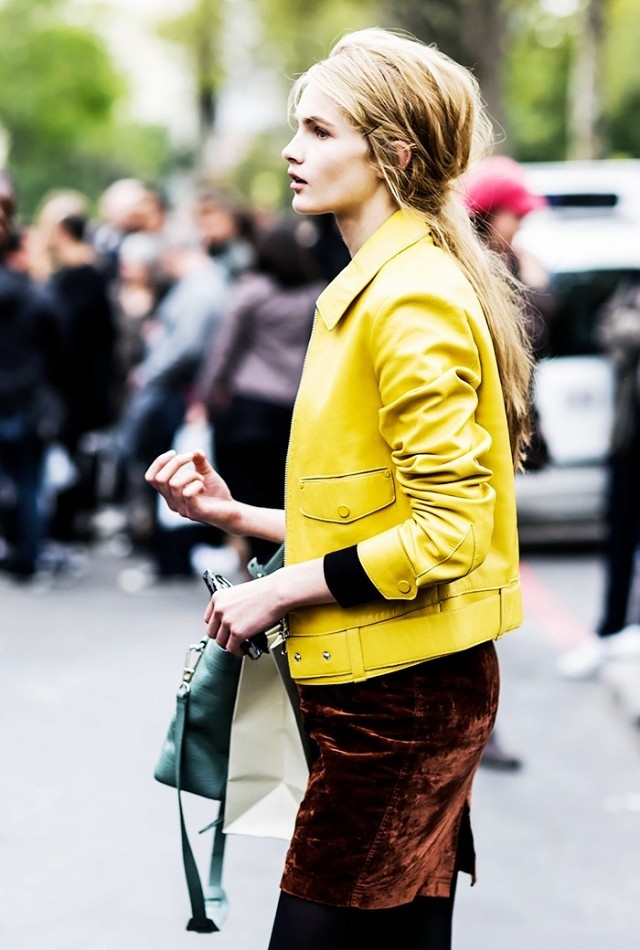 | Áo da cũng không còn bó hẹp trong màu đen, nâu truyền thống mà trở nên sức sống hơn với màu vàng neon. |