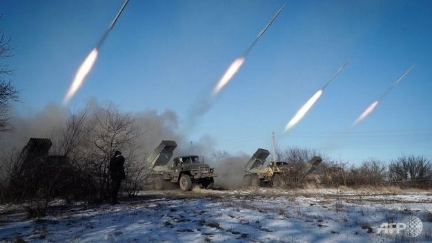 | Quân ly khai bắn tên lửa Grad gần Donetsk . Ảnh: AFP |