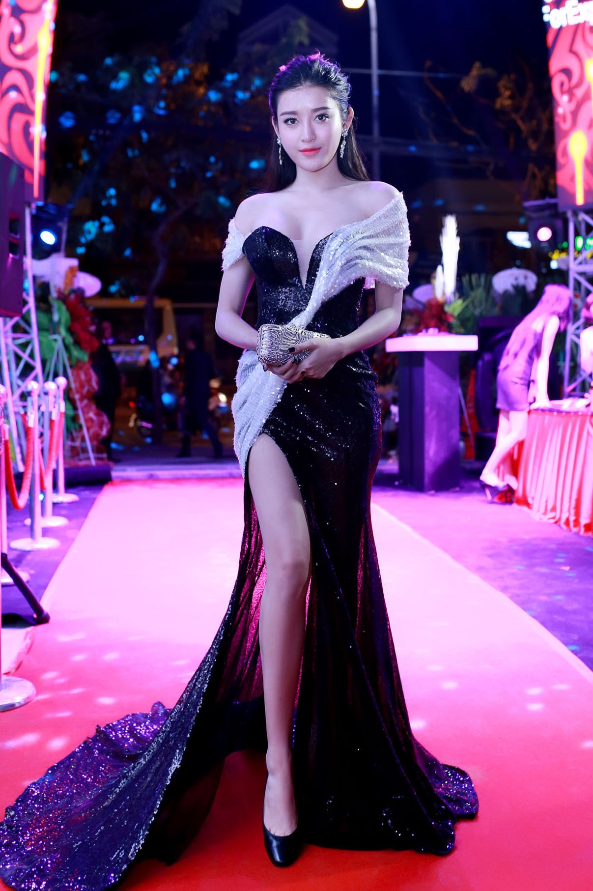 | Huyền My nổi bật trên thảm đỏ sự kiện cuối tuần với đầm dạ hội ánh sequin lộng lẫy của Phạm Đăng Anh Thư. Thiết kế kết hợp chất liệu trắng đen hài hòa, điểm nhấn trễ vai giúp Á hậu Việt Nam 2014 thêm lôi cuốn. Ảnh: Khoa Nguyễn |