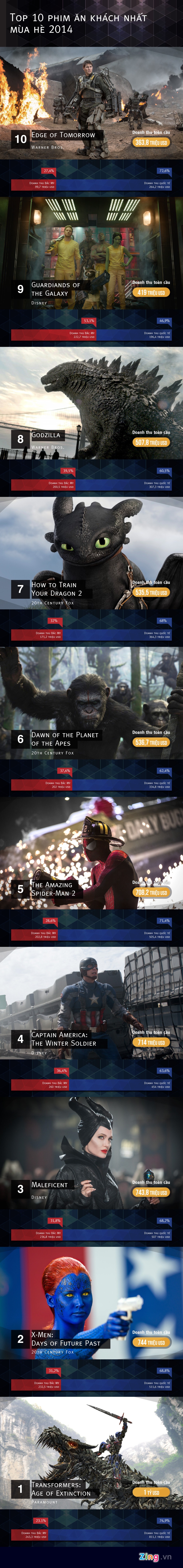 Cùng Zing.vn điểm danh 10 bộ phim bom tấn ăn khách nhất tại các phòng vé trên khắp toàn cầu trong mùa hè năm 2014, tính đến ngày 20/8.
