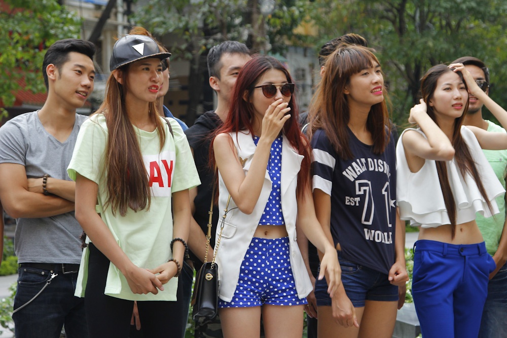 | So với các thí sinh nữ, các chàng trai có phần dạn dĩ và tự tin hơn. |