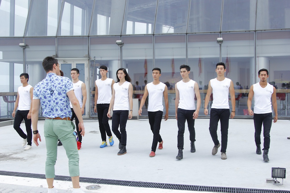 | Hai giám khảo mùa 5 xuất hiện với trang phục nổi bật. Adam chọn gam màu pastel thanh lịch, trong khi đó, Xuân Lan diện jeans mạnh mẽ và vest màu vàng bắt mắt. Host của chương trình giới thiệu bài học đầu tiên với các thí sinh là kỹ năng catwalk cơ bản. Nhóm người mẫu tương lai có buổi tập luyện ngay trên tầng cao 191m của tòa nhà Bitexco. |