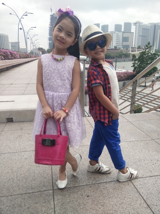 | Cả hai bạn nhỏ đều tỏ ra vô cùng thích thú khi được "xuất ngoại". Trong những bức hình hậu trường của chuyến đi, nụ cười luôn thường trực trên môi hai bé. |