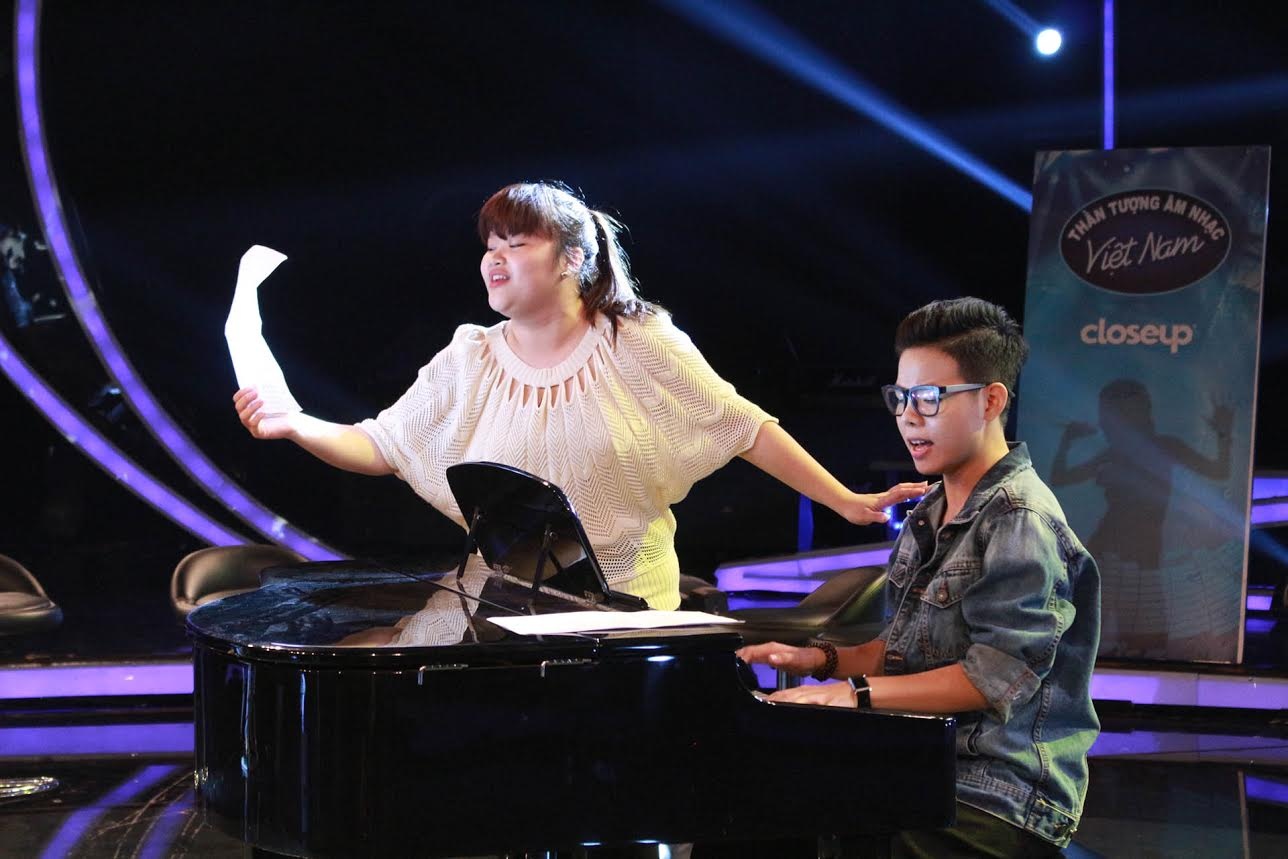 | Phạm Hải Âu và thí sinh Minh Quân tích cực tập luyện cho đêm nhạc tới. |