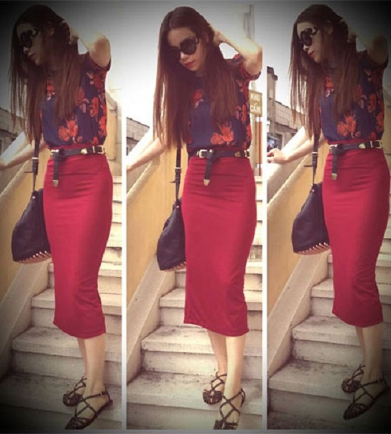 Hồ Ngọc Hà thanh lịch trong chiếc váy bút chì dáng dài với gam màu đỏ quyến rũ. |