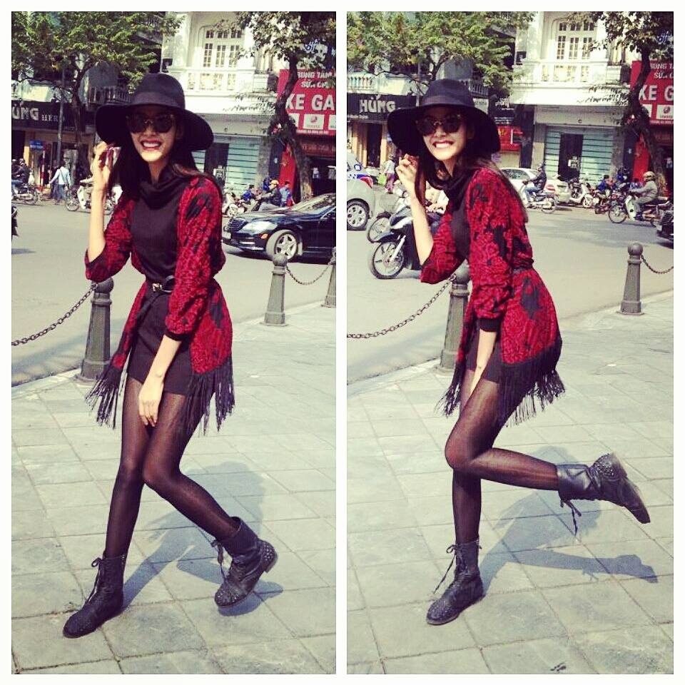 Hoàng Thùy: Lợi thế ngoại hình giúp quán quân Vietnam's Next Top Model ứng dụng thành công nhiều phong cách. Gu thời trang thu đông 2014 của chân dài cũng được giới mộ điệu đánh giá cao.