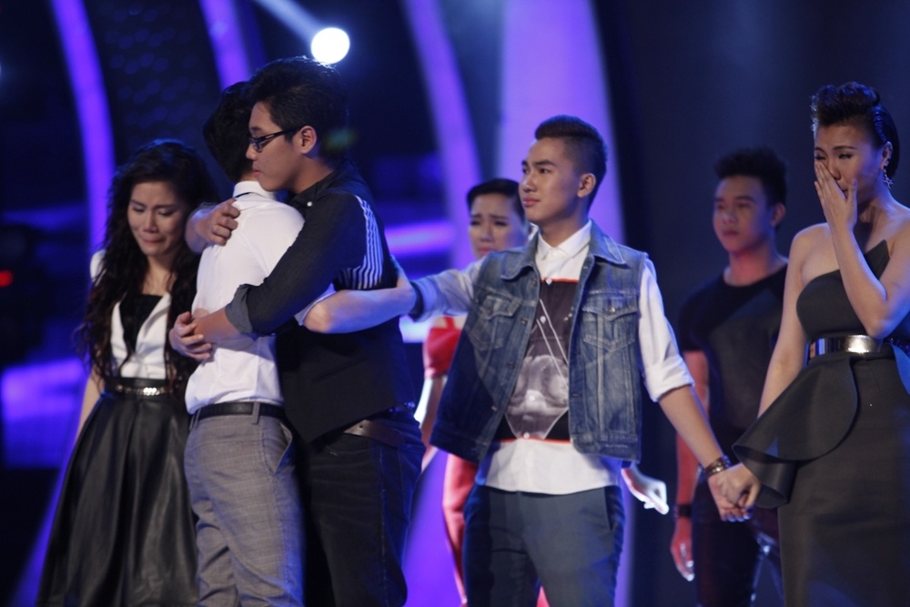 | Những giọt nước mắt đã lăn trên gương mặt của các thí sinh còn lại khi tạm biệt Anh Quân. |