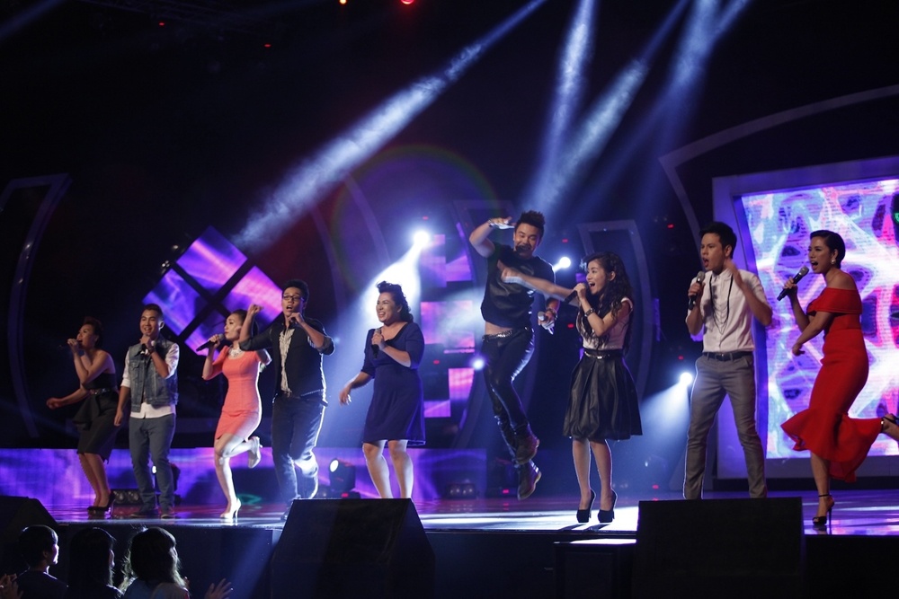 | Top 9 cùng hòa giọng trong ca khúc Feel this moment (Pitbull ft. Christina Aguilera) cùng màn vũ đạo ấn tượng. |