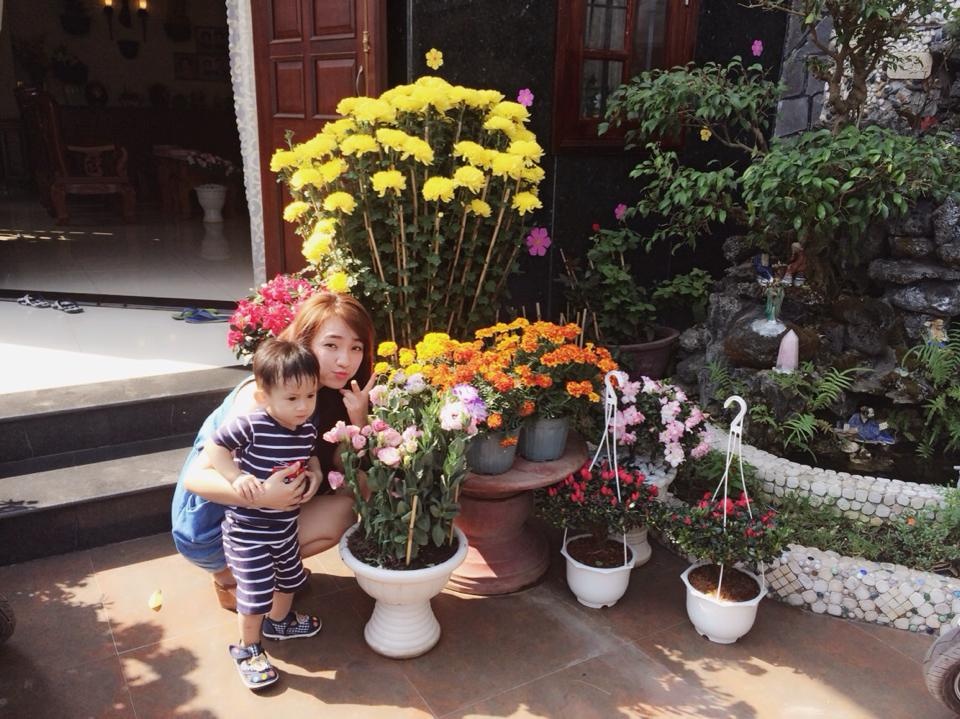 | Sau nhiều ngày xa cách, Minh Thùy cảm thấy vui vì được gặp lại người thân, nhất là mấy đứa cháu nhỏ của mình. Cô kể mỗi dịp Tết đến, mấy chị em hay theo ba lên rừng để hái mai rừng về chưng trong phòng khách. |