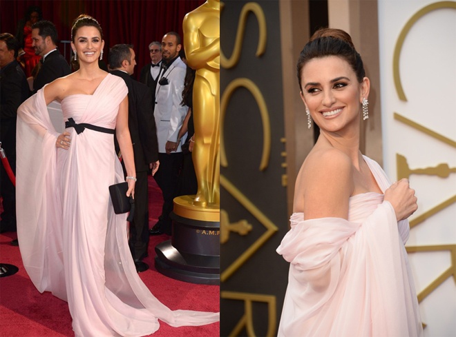 | Penélope Cruz tỏa sáng tại Lễ trao giải Oscar 2014 với kiểu váy dạ hội bất đối xứng sang trọng, độc đáo của Giambattista Valli. |