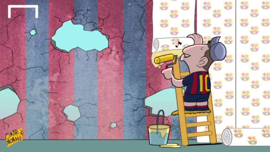 | Một mình Lionel Messi đang cố gắng che giấu "bức tường vỡ nát" Barca. |