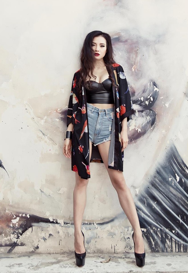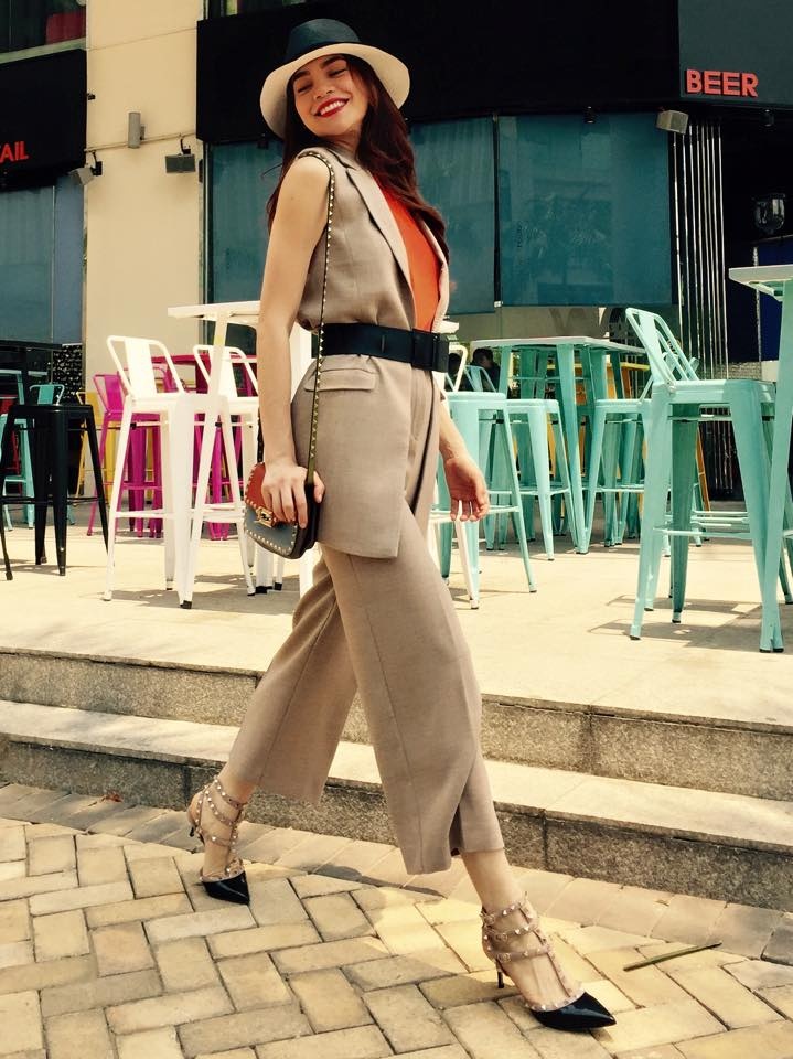 | Phương Trinh Jolie diện trang phục cá tính, khỏe khoắn phù hợp với bối cảnh ngoài trời bụi phủi. Bộ cánh hợp phong cách giúp cô nổi bật trên đường phố. |