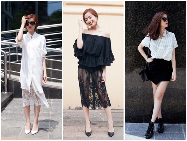 | Những set trang phục nhanh nhạy xu hướng giúp Hoàng Thùy Linh trở thành điểm nhấn đẹp trong tuần vừa qua. Cô khéo léo dùng hai màu trắng đen cho loạt xu hướng street style gợi cảm. Áo sơ-mi dài, váy xuyên thấu và chân váy “bì thư”,… mang lại vẻ hiện đại, trẻ trung cho người mặc. |