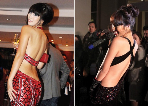 "Siêu vòng 3" Lan Hương tạo dáng khiên cưỡng vì phần lưng hơi dài.