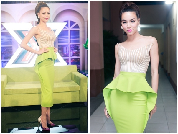 Trên ghế nóng chương trình X Factor, giám khảo Hồ Ngọc Hà ghi điểm ấn tượng với thiết kế phá cách, có phom dáng cứng theo phong cách hiện đại, mạnh mẽ và sang trọng. Bộ váy hợp vóc dáng và phong thái tự tin giúp bà mẹ một con tiếp tục nhận được đánh giá cao từ các tính đồ thời trang. Đi kèm là tông trang điểm quyến rũ và kiểu tóc cột cao năng động.