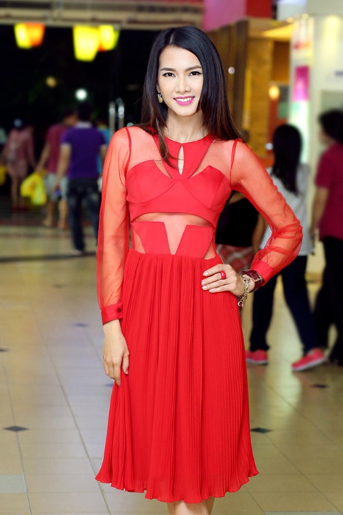 Trang phục cut-out táo bạo vừa nữ tính vừa hiện đại đưa Anh Thư vào danh sách mỹ nhân mặc đẹp tuần qua. Thiết kế có đường cắt ở thân áo khá mới lạ và tạo điểm nhấn cuốn hút. Tông màu đỏ cảm tôn làn da và phong thái tự tin của người mặc. Anh Thư cũng luôn được đánh giá cao về cách chọn tông trang điểm hòa hợp cùng tổng thể.