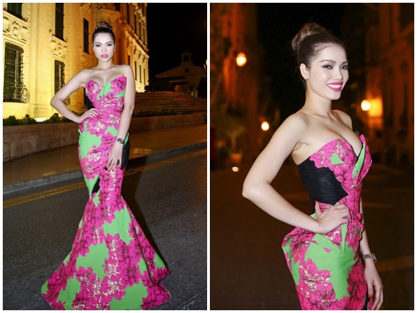 Lệ Quyên cũng là một trong những ca sĩ được đánh gia cao về gu thẩm mỹ. Thời trang sân khấu sang trọng và biết tiết chế của người đẹp tạo được thiện cảm với công chúng và khiến họ hài lòng. Tuần này, bà mẹ một con chọn chiếc đầm màu hồng trẻ trung. Thiết kế tối giản nhấn nhá ở cánh tay bồng mang đến vẻ đẹp thanh lịch, nền nã.