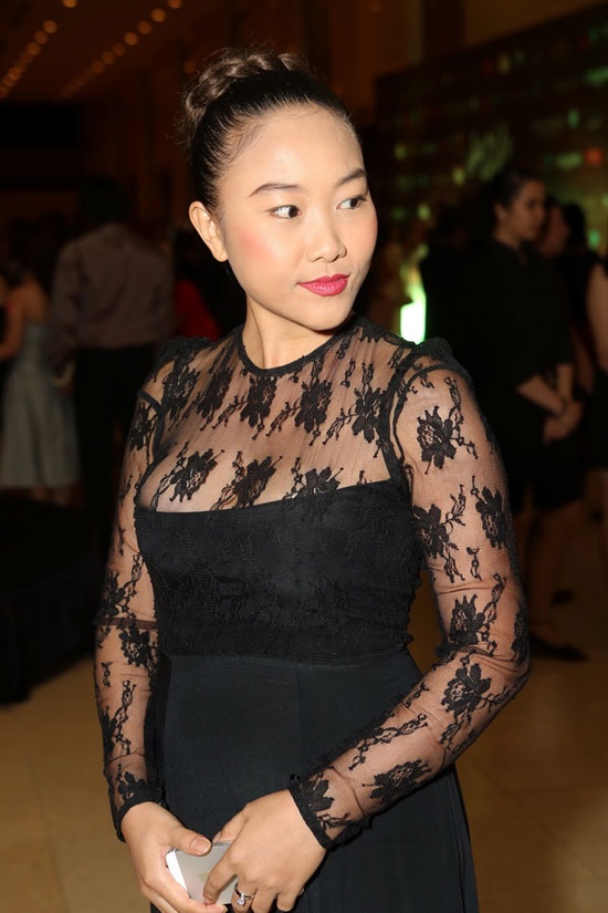 | Trang phục dự tiệc của Vy Oanh được đánh giá cao nhờ sự đầu tư và chọn lựa hợp vóc dáng, che lấp được yếu điểm ngoại hình. |