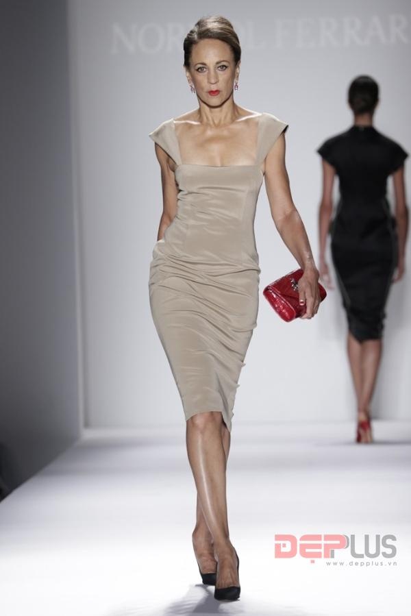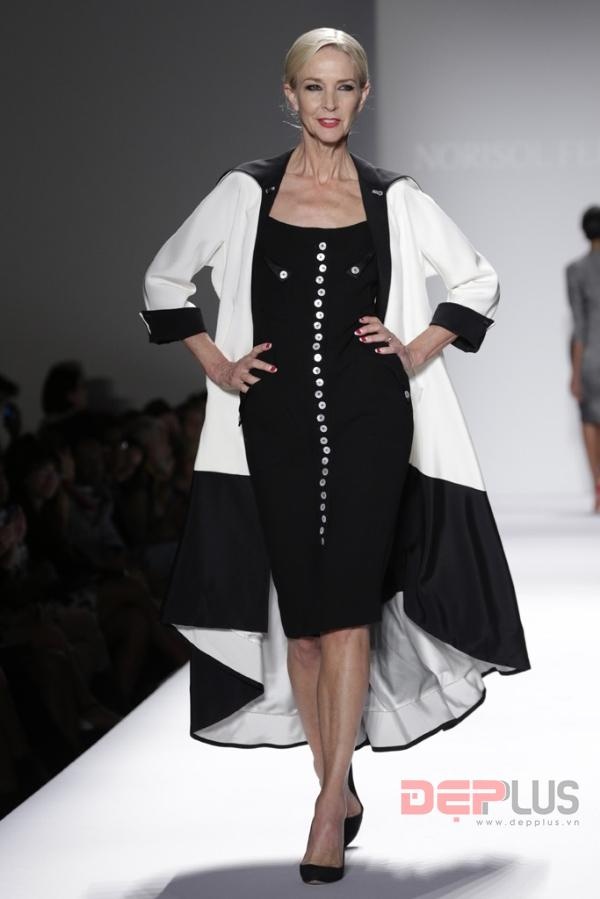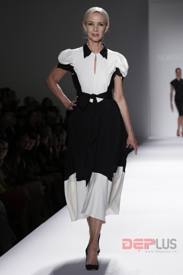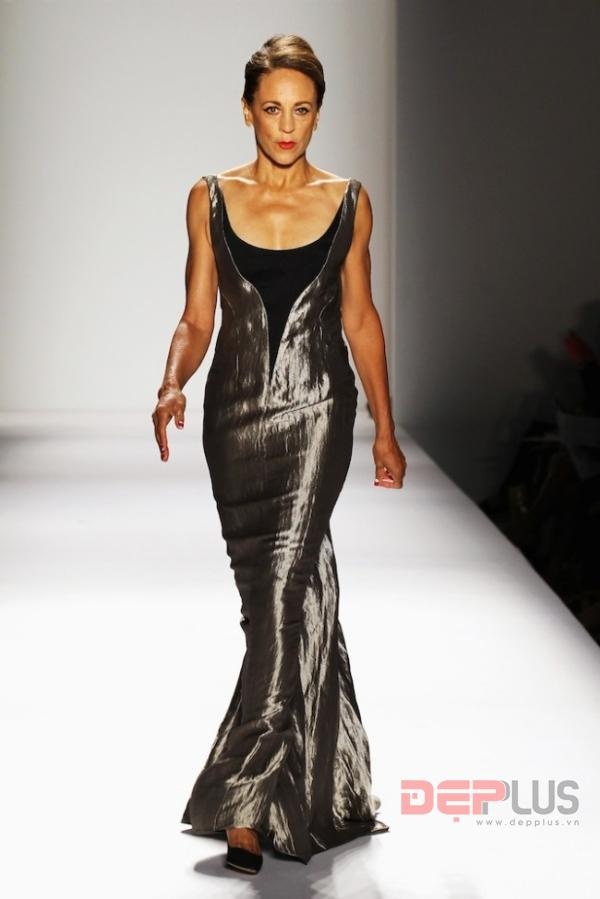 | Karen Bjornson (60 tuổi) khiến khán giả bất ngờ khi xuất hiện và sải những bước catwalk điêu luyện, với thần thái sang trọng, thanh thoát trong tuần lễ thời trang New York xuân hè 2013. |