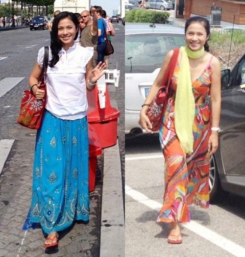 | Việt Trinh đi nghỉ nước ngoài nhưng nhìn cô với những bộ váy lòe loẹt này ai cũng nghĩ cô đi an dưỡng ở vùng sâu vùng xa nên không muốn xài hàng hiệu. |
