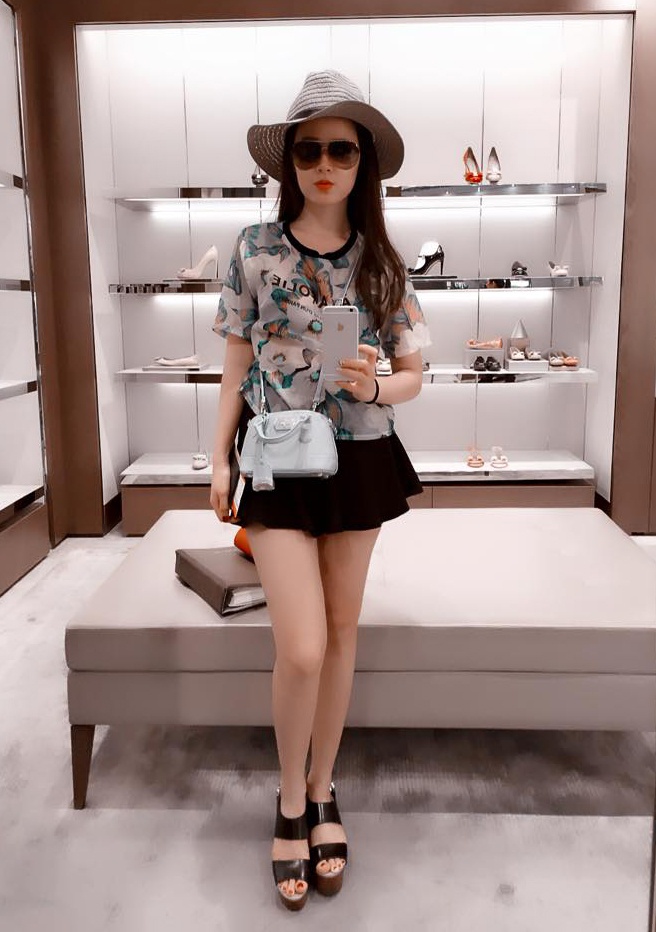 Cựu hot girl Midu ăn vận nữ tính khi đi shopping ở các cửa hàng tại TP HCM. Lần này, người đẹp phim Thiên mệnh anh hùng diện áo voan họa tiết, mix cùng chân váy ngắn khoe chân thon. Giày cao đế bằng tôn vóc dáng.