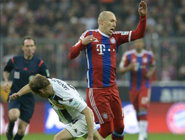 Cuối tuần qua, Bayern của Arjen Robben gây thất vọng khi thua Borussia Moenchengladbach 0-2. Anh ra sân từ đầu nhưng chỉ chơi 24 phút do dính chấn thương. Với 17 bàn ở Bundesliga, tiền vệ người Hà Lan đứng thứ 9 khi có 34 điểm.