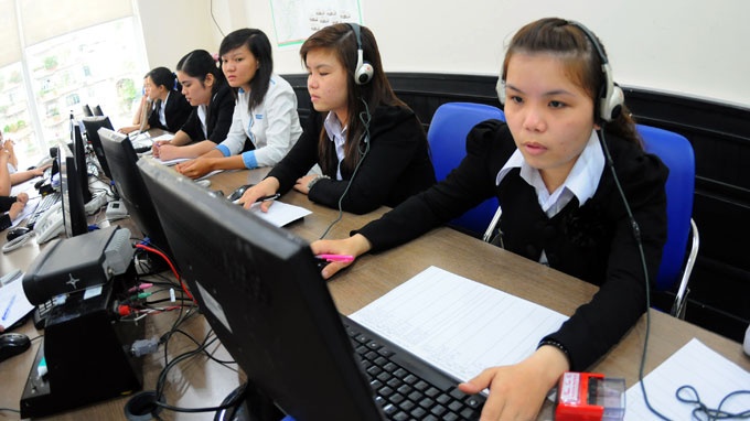 | Hai chị em sinh đôi - cử nhân sư phạm ĐH Đồng Tháp Đặng Thị Thanh Thảo và Đặng Thị Thu Thảo (áo sậm) hiện làm nhân viên trực tổng đài cho một hãng vận tải tại TP.HCM. |