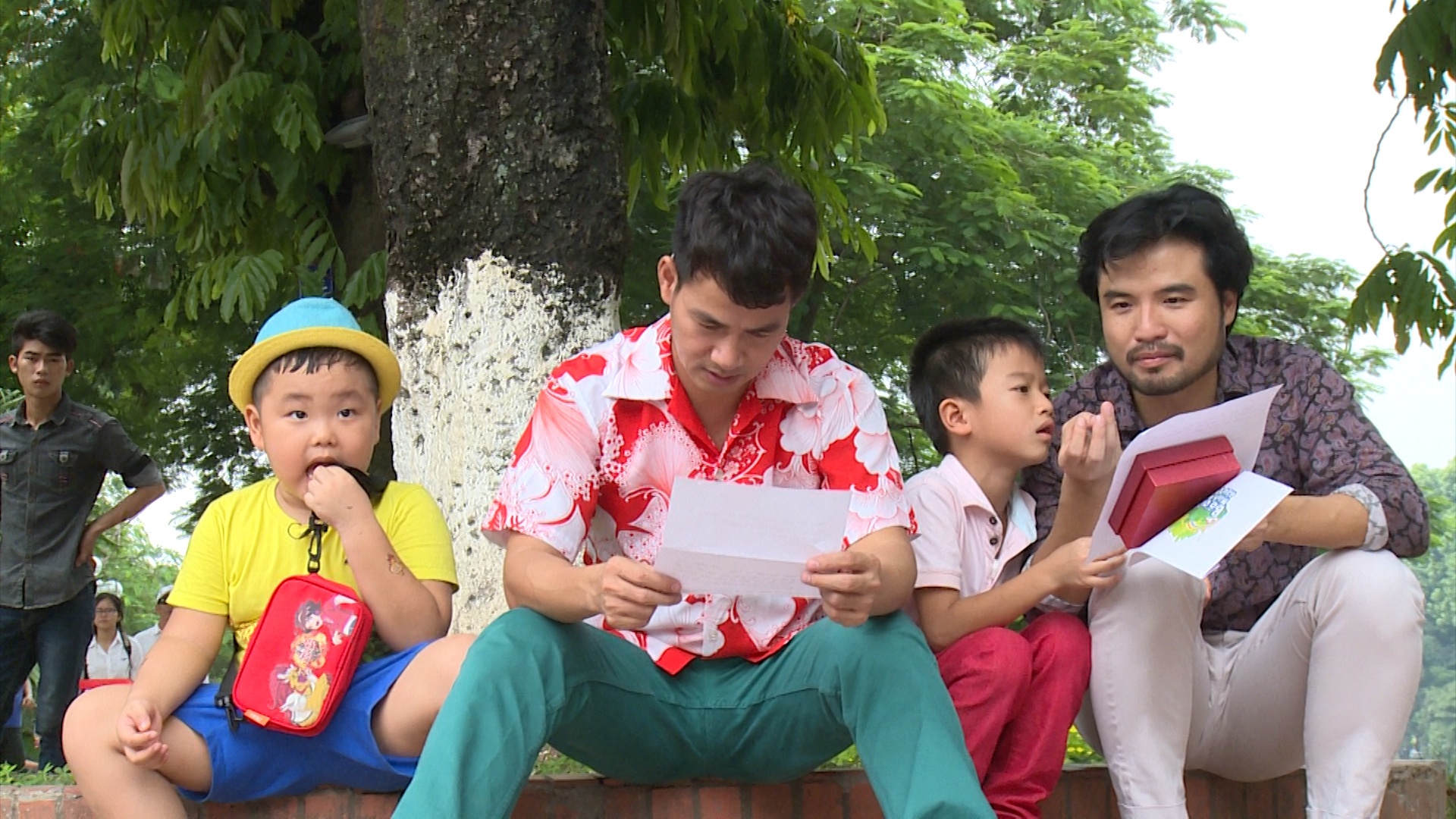 | Trước sự chân thành của các bé, bác Leng Keng quay trở lại. Bốn cặp bố con vui mừng gặp lại người giao nhiệm vụ của chương trình Bố ơi, mình đi đâu thế? |