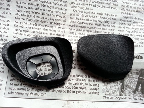 | Nắp ốp có lỗ cho cần công tắc (trái) và nắp nguyên gốc. |