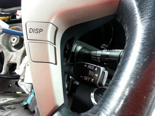 Để bổ sung cruise control, việc đầu tiên cần làm là tìm bộ dây điều khiển ECU, công tắc điều khiển dạng cần gạt và một số phụ kiện đi kèm sao cho phù hợp với Camry. Khi đã có rồi, việc tiếp theo là mở nắp vô-lăng ra, tháo tạm thời túi khí cho dễ thao tác, lắp cần công tắc điều khiển vào vị trí có sẵn rồi cắm dây nối vào đúng chân dành cho cruise control trên hộp ECU.