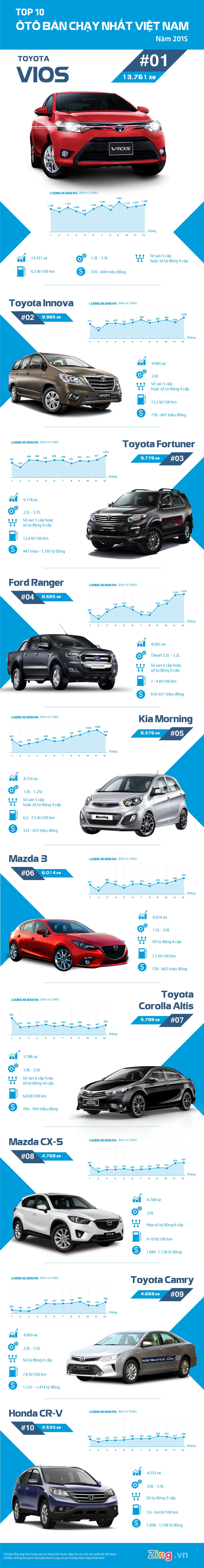 Toyota thống trị top 10 ôtô bán chạy tại Việt Nam 2015
