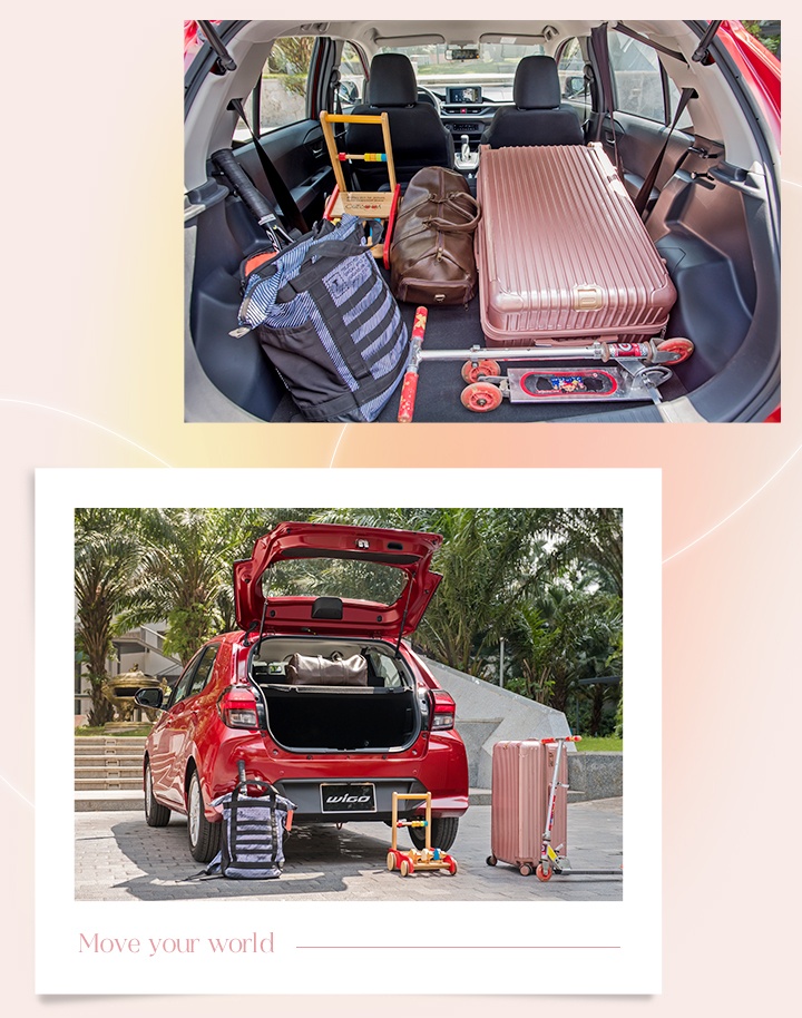 Đối với những mẫu xe cỡ nhỏ, không gian nội thất luôn là bài toán các thương hiệu cần giải quyết khi cân đối chi phí cho phần động cơ vận hành và kích thước. Với Wigo 2023, chiếc xe đã làm tốt trong việc dung hòa 2 yếu tố này. Có trục cơ sở dài 2.525 mm, cùng khoảng cách 910 mm giữa 2 hàng ghế, mẫu xe này mang tới khách hàng không gian rộng nhất phân khúc. Thể tích khoang hành lý cũng có thể lên tới 276 lít khi bỏ tấm ngăn. Với những mẹ bỉm sữa hay tín đồ mua sắm, khoang hành lý rộng của Wigo không gây thất vọng.