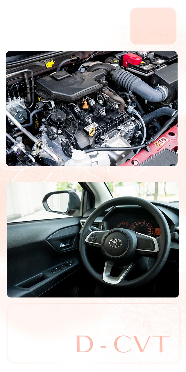 Cảm giác lái của khách hàng sẽ càng được nâng niu hơn nữa nhờ nhiều trang bị an toàn tiên tiến hiếm có trong phân khúc xe hạng A như hệ thống cảnh báo điểm mù BSM, hệ thống cảnh báo phương tiện cắt ngang phía sau RCTA, hệ thống hỗ trợ khởi hành ngang dốc HAC và hệ thống kiểm soát lực kéo TRC. Đặc biệt hệ thống cân bằng điện tử VSC giúp tự động giảm công suất động cơ và phanh bánh xe khi phát hiện nguy cơ xe bị trượt, nhờ đó xe vận hành ổn định, đặc biệt khi chuyển hướng đột ngột để tránh chướng ngại vật ở tốc độ cao.