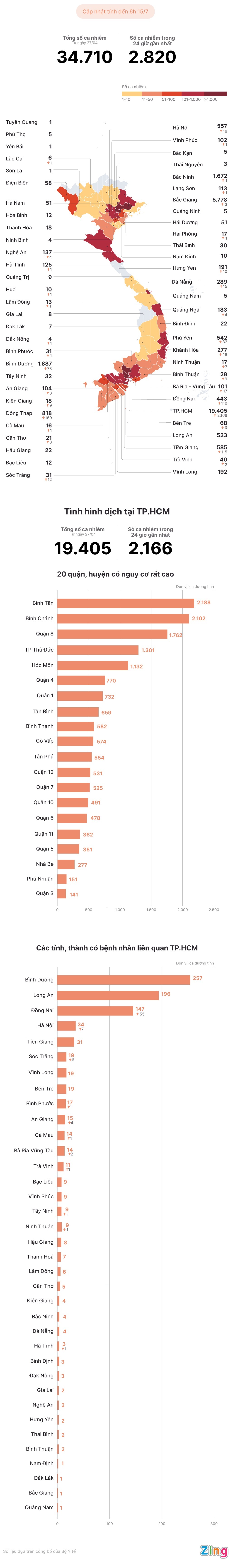 Trong 24 giờ qua, số ca mắc Covid-19 tại TP.HCM tăng hơn 2.000 người. Đặc biệt, nhiều tỉnh, thành phố vẫn ghi nhận thêm bệnh nhân liên quan.
