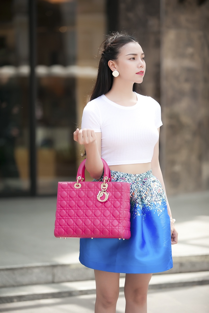 Phụ kiện túi xách Dior quen thuộc, là mẫu túi mà Trà Ngọc Hằng rất ưa thích, cô sở hữu 5 chiếc tương tự nhưng có màu sắc khác nhau.