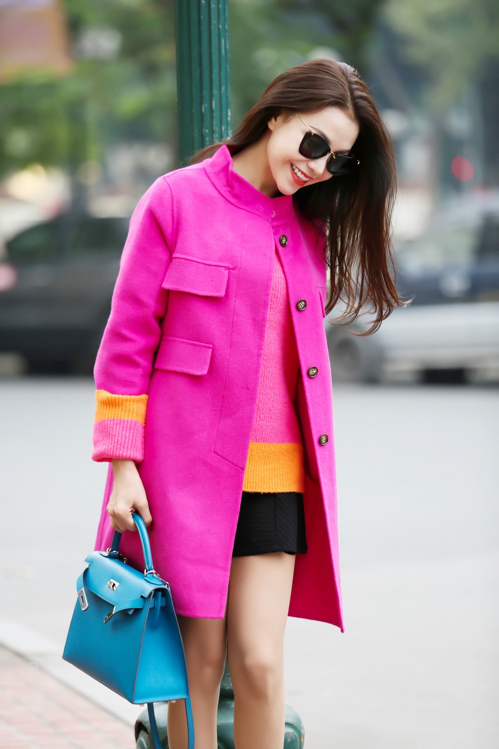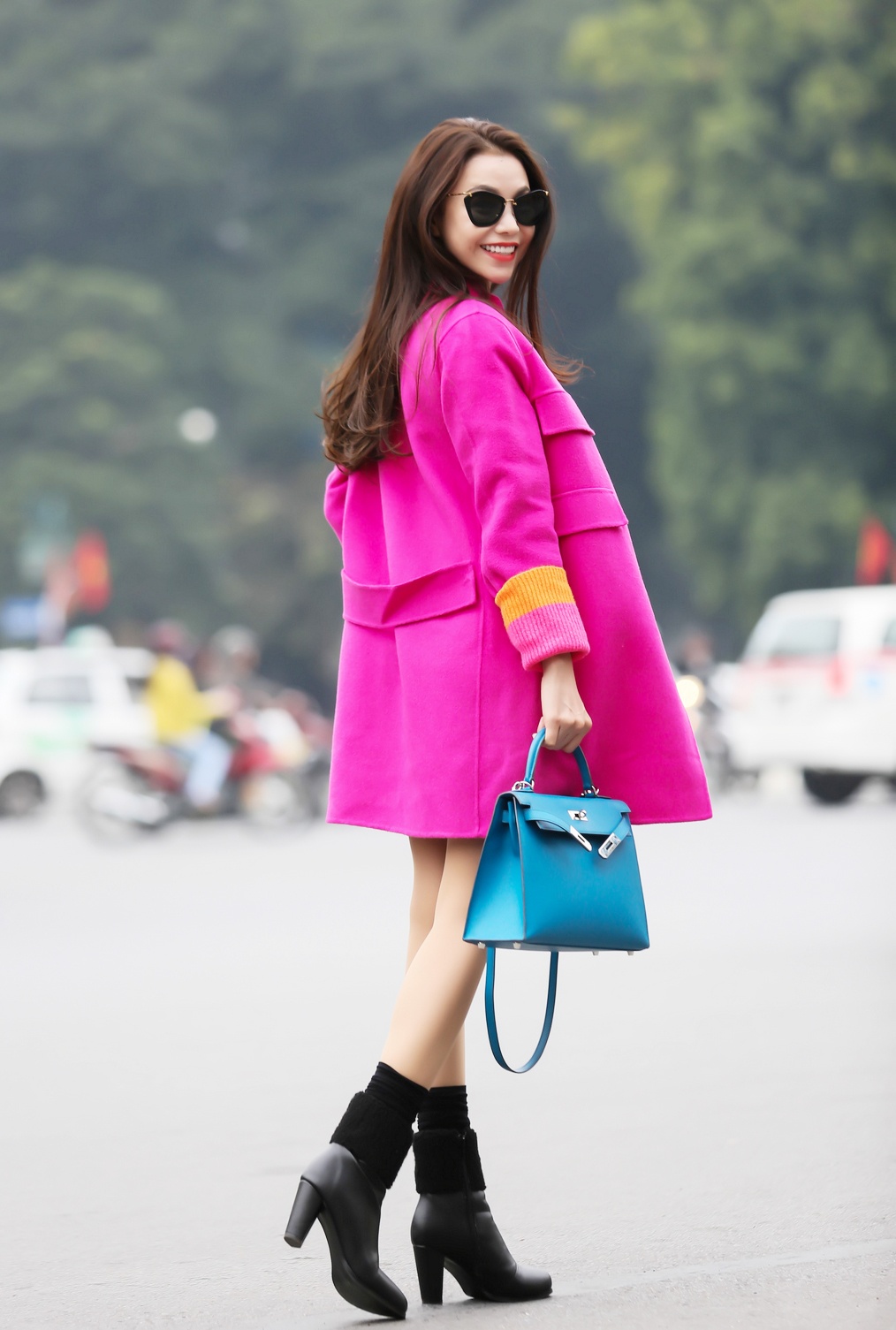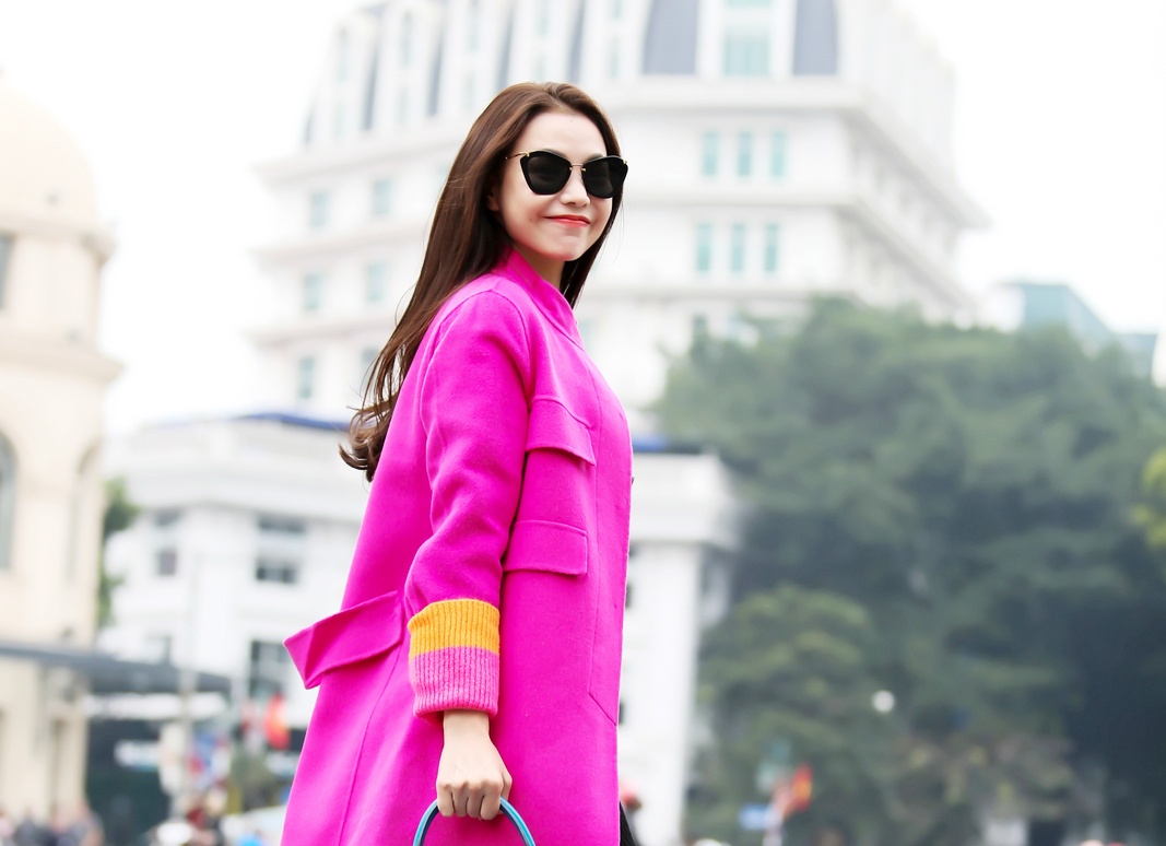 | Diện trang phục mùa đông ấm với những gam màu nổi bật, người đẹp tự tin lướt phố. |