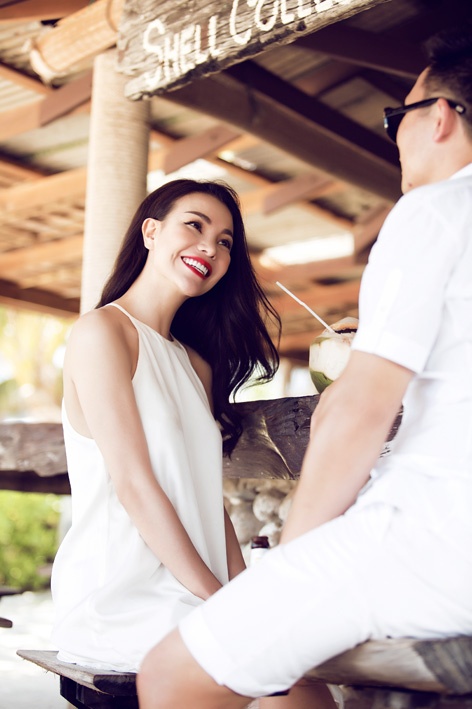 | Sở hữu vóc dáng cân đối, Trà Ngọc Hằng dễ dàng ứng dụng nhiều phong các thời trang từ cá tính, nữ tính, gợi cảm đến sang trọng. Trong bộ ảnh vừa thực hiện, cô diện đầm hai dây, tông trắng tinh khiết, nhẹ nhàng khi tản bộ. |