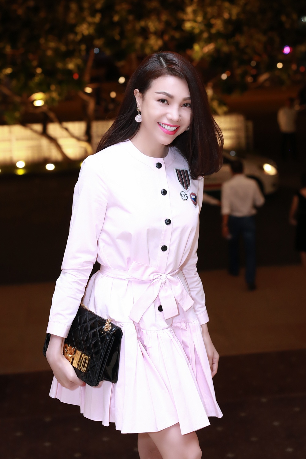 | Tham dự sự kiện tại TP HCM, Trà Ngọc Hằng chọn trang phục nhẹ nhàng, tinh tế của thương hiệu Dior. Người đẹp kết hợp với túi cầm tay hiệu Moschino cá tính nhưng cũng không kém phần sang trọng. |