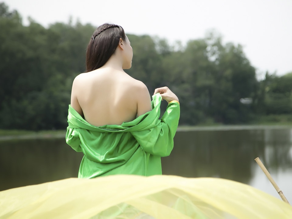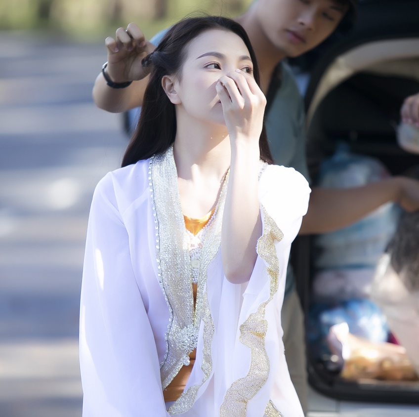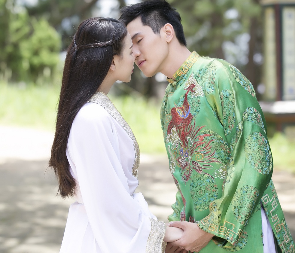 | Trong MV, với tạo hình cổ trang thùy mị, người đẹp 9X vẫn có những shoot quay khá nóng bỏng trong cảnh tắm suối cùng các nàng tiên hay để nguyên bờ vai trần nồng nàn, tình tứ cùng diễn viên Minh Anh. |