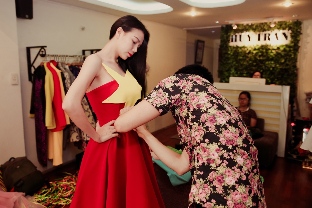 Để chuẩn bị kỹ lưỡng cho sự xuất hiện với bộ đầm độc đáo, có một không hai của mình, buổi chiều cùng ngày, Trà Ngọc Hằng và Huy Trần đã cùng thử đồ hoàn chỉnh lần cuối trước khi đêm tiệc diễn ra.