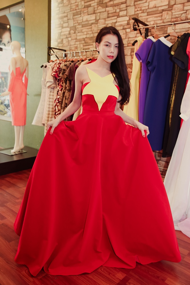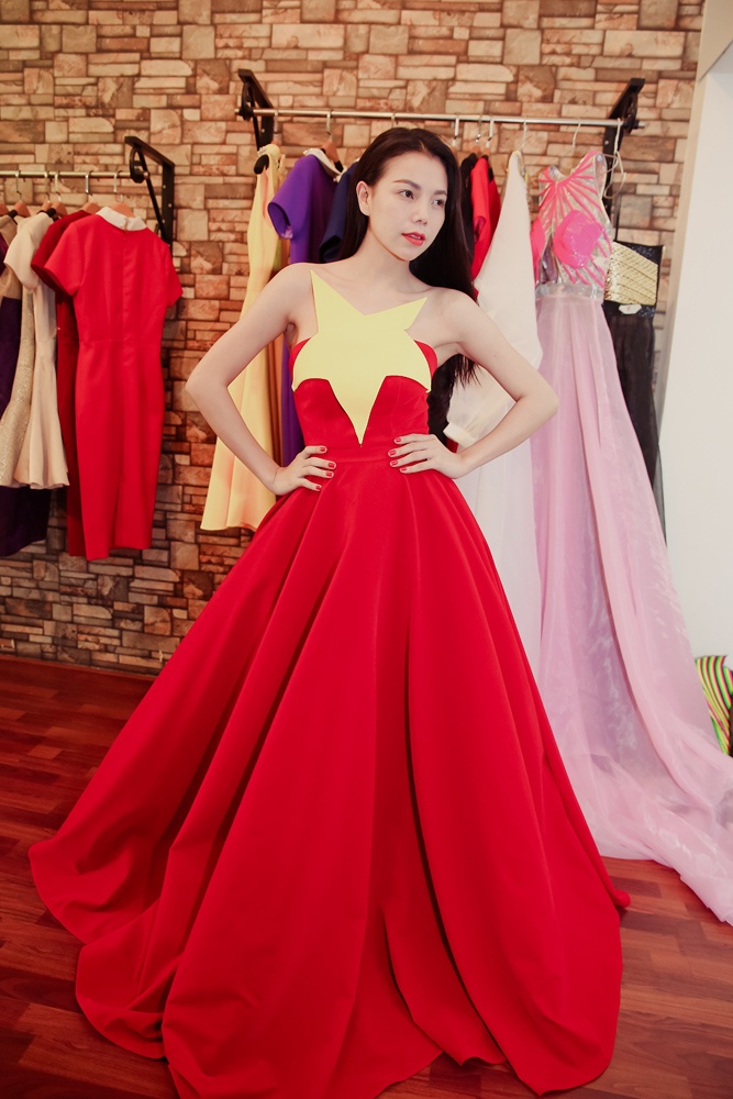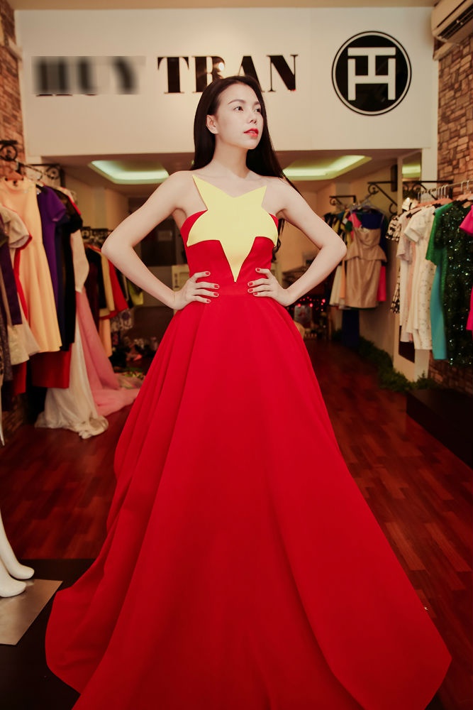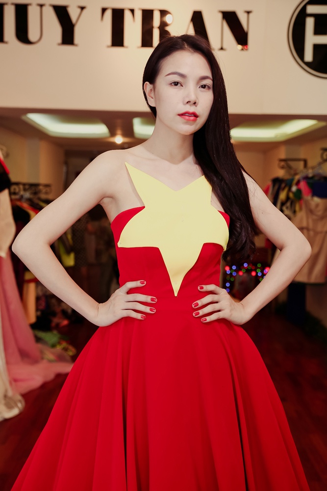 Với ý tưởng độc đáo, hướng về Biển Đông và thể hiện lòng yêu nước, Trà Ngọc Hằng đã bàn bạc với nhà thiết kế Huy Trần để thiết kế bộ đầm dạ tiệc đặc biệt lấy hình ảnh từ lá cờ đỏ sao vàng cao quý của Việt Nam. Đây là bộ đầm Trà Ngọc Hằng sẽ mặc trong Đêm hội chân dài diễn ra vào tối 11/6.