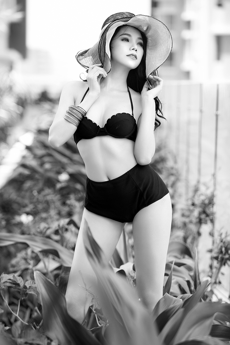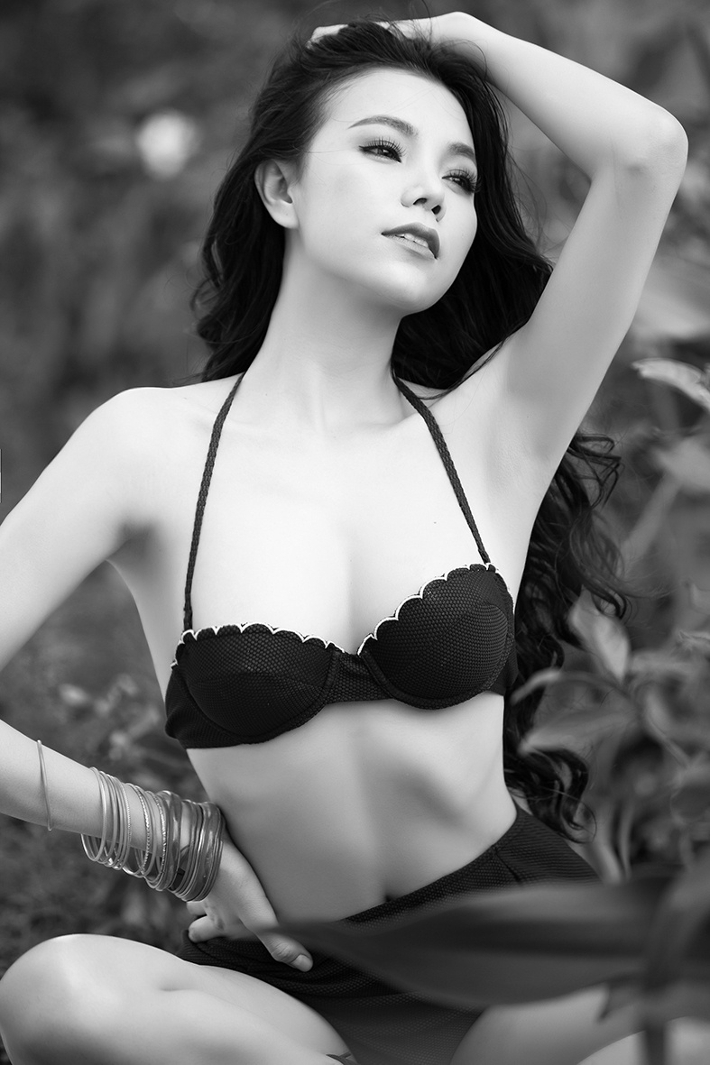 | Trong bộ ảnh mới, người đẹp tiếp tục phát huy lợi thế 3 vòng gợi cảm. |