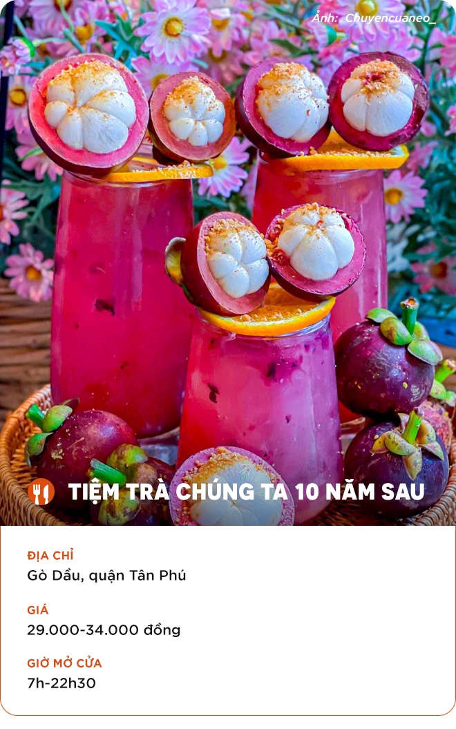 Đặc biệt, trà măng cụt, thức uống mới ít quán nào có, là sự lựa chọn phù hợp để bạn đổi vị ngày hè. Khách có thể đặt thêm bánh ngọt, trái cây lắc nhâm nhi cùng thức uống.
