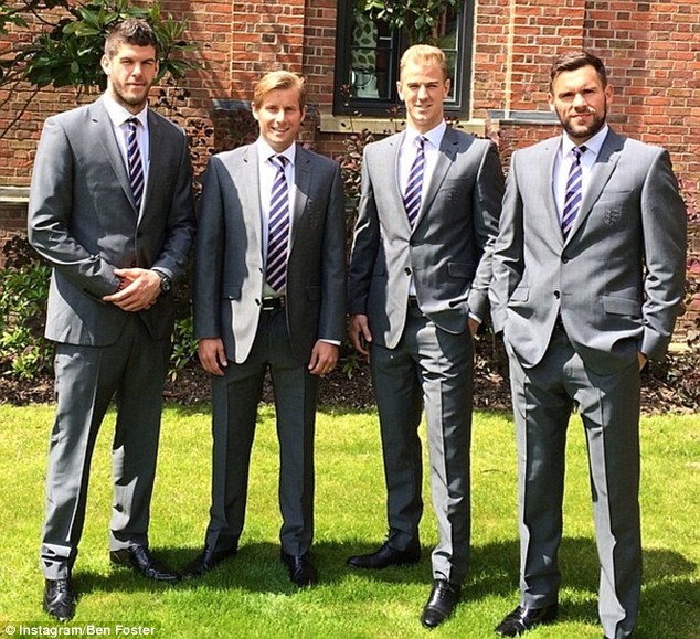 | Joe Hart, các thủ thành dự bị Fraser Foster (ngoài cùng bên trái), Ben Foster (ngoài cùng bên phải) và HLV thủ môn David Watson. |