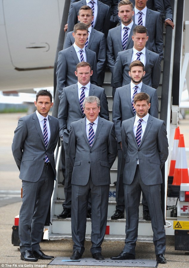 | Các cầu thủ và BHL tuyển Anh diện vest lịch lãm trước khi lên đường. |