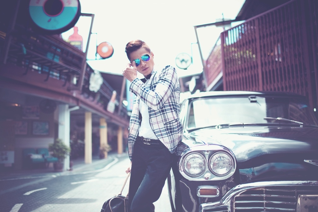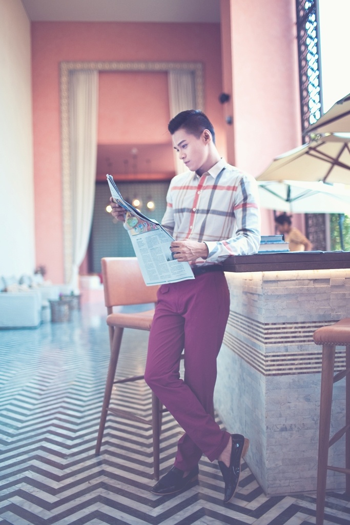 | Trong bộ ảnh mới, Quang Phúc hóa thân thành anh chàng lịch lãm nhưng vẫn đậm chất chơi. |