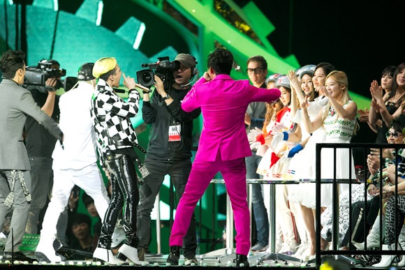 Cũng trong tuần qua, các cô em cùng nhà với Super Junior là SNSD đã xuất hiện trên sân khấu MAMA 2012. Sau khi nhận giải thưởng Nhóm nhạc nữ xuất sắc nhất, đại diện của nhóm là Seo Hyun và Hyo Yeon đã vô cùng hào hứng khi thưởng thức các phần trình diễn. Đặc biệt, khi được các chàng trai Big Bang mời nhảy, 2 cô nàng đã không ngần đứng lên và nhún nhảy theo ca khúc Fantastic Baby.